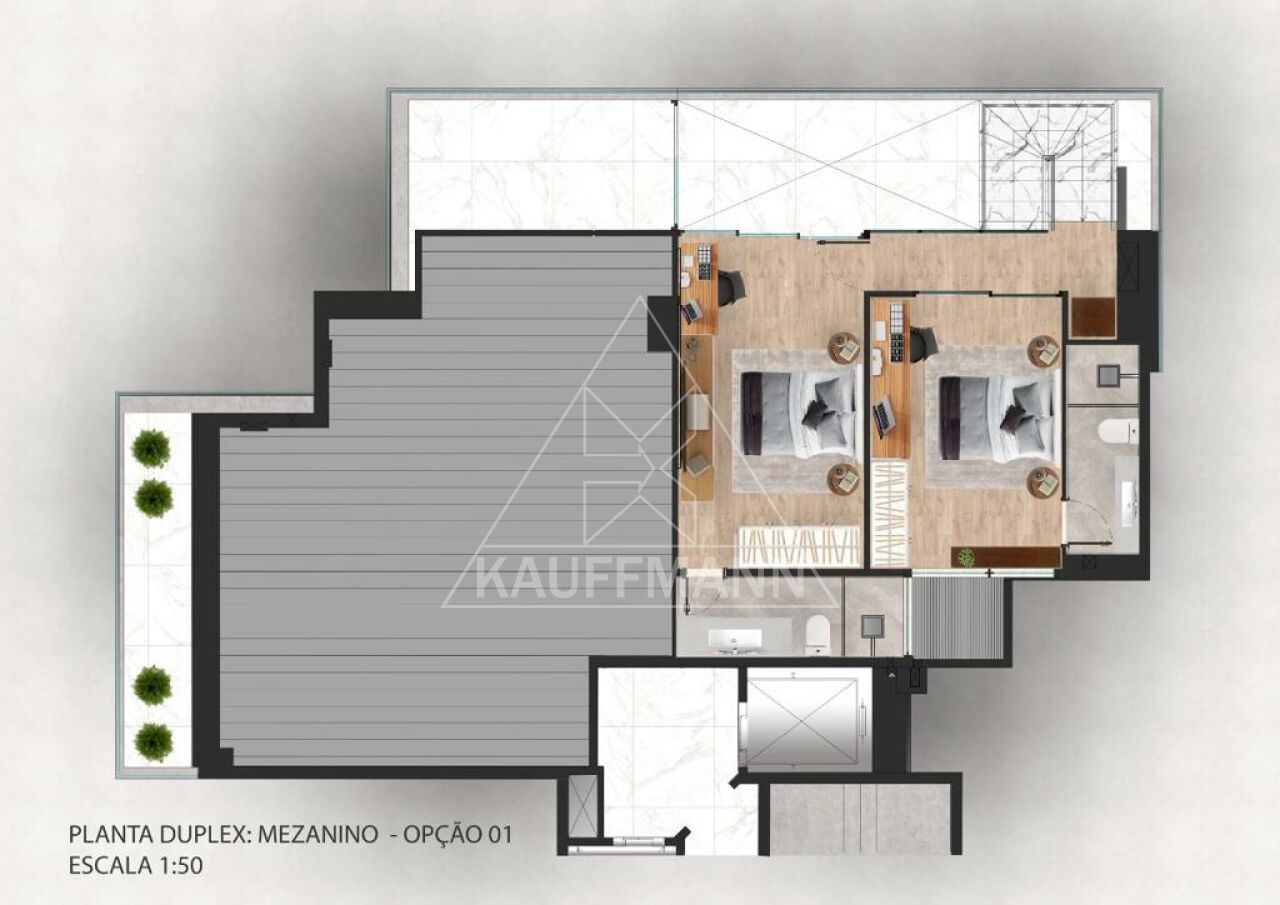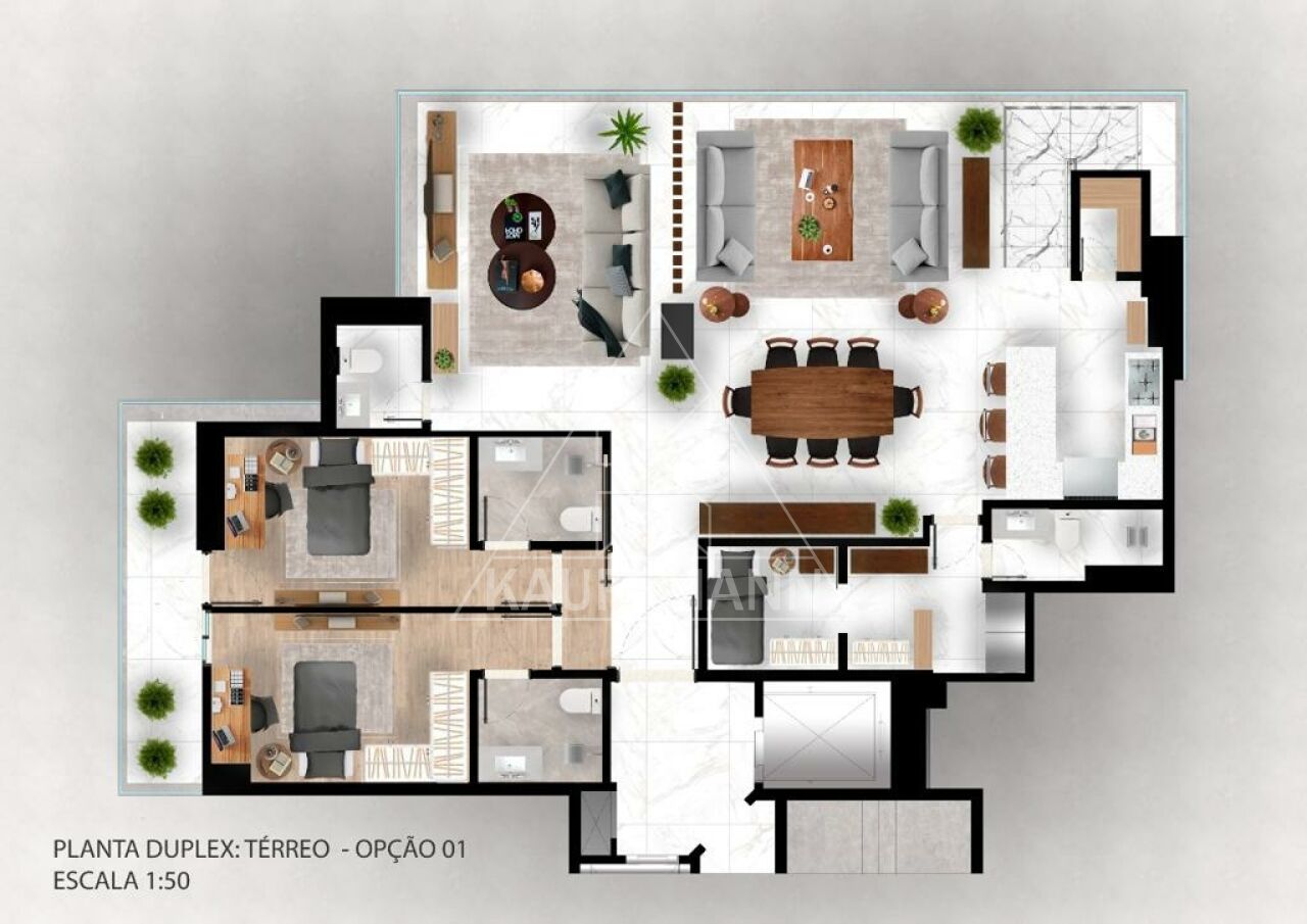 O projeto oferece ainda a opção de ampliação da planta para duplex, atingindo 200m² de área privativa, permitindo ao morador personalizar os ambientes conforme suas necessidades.