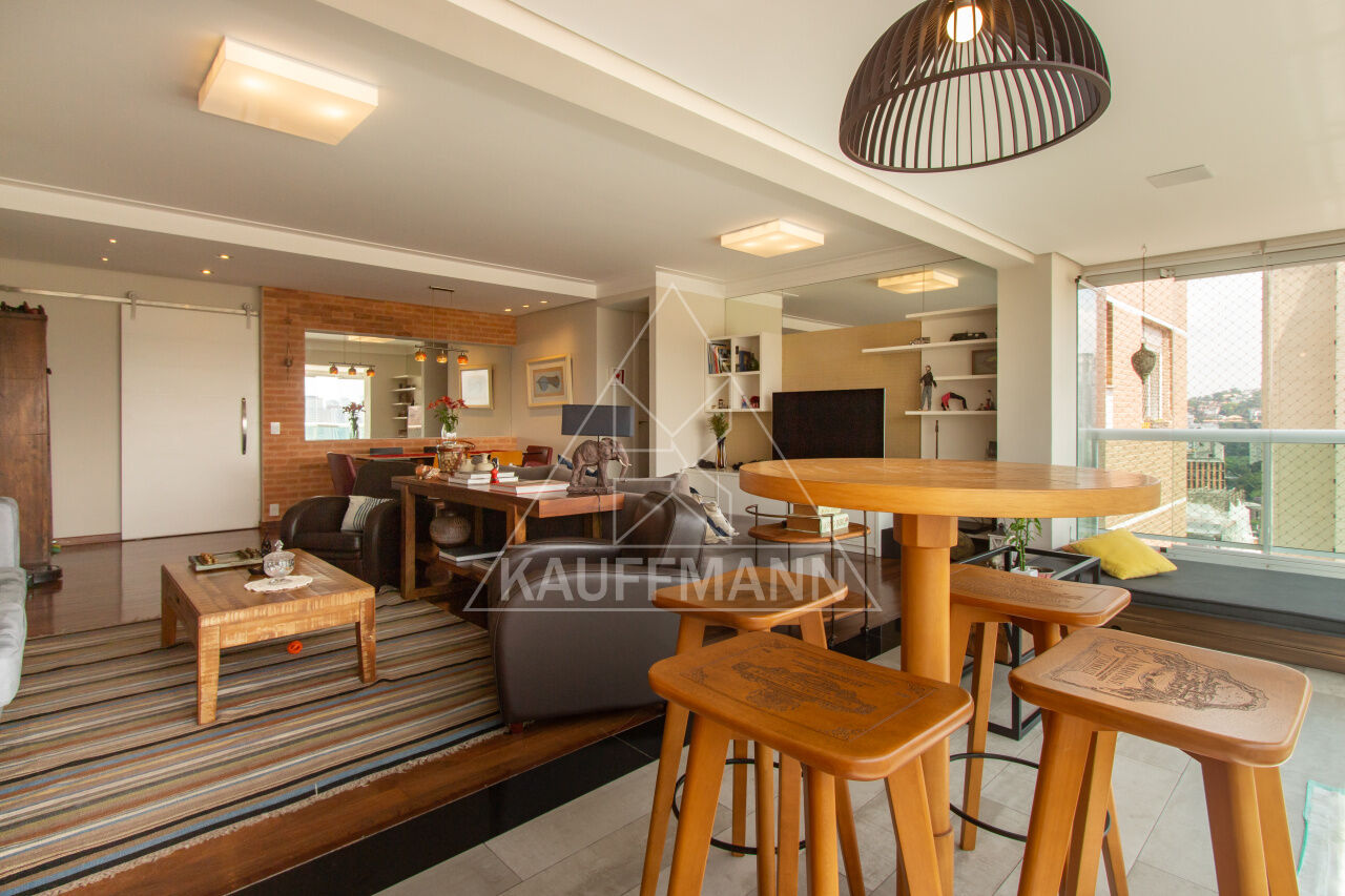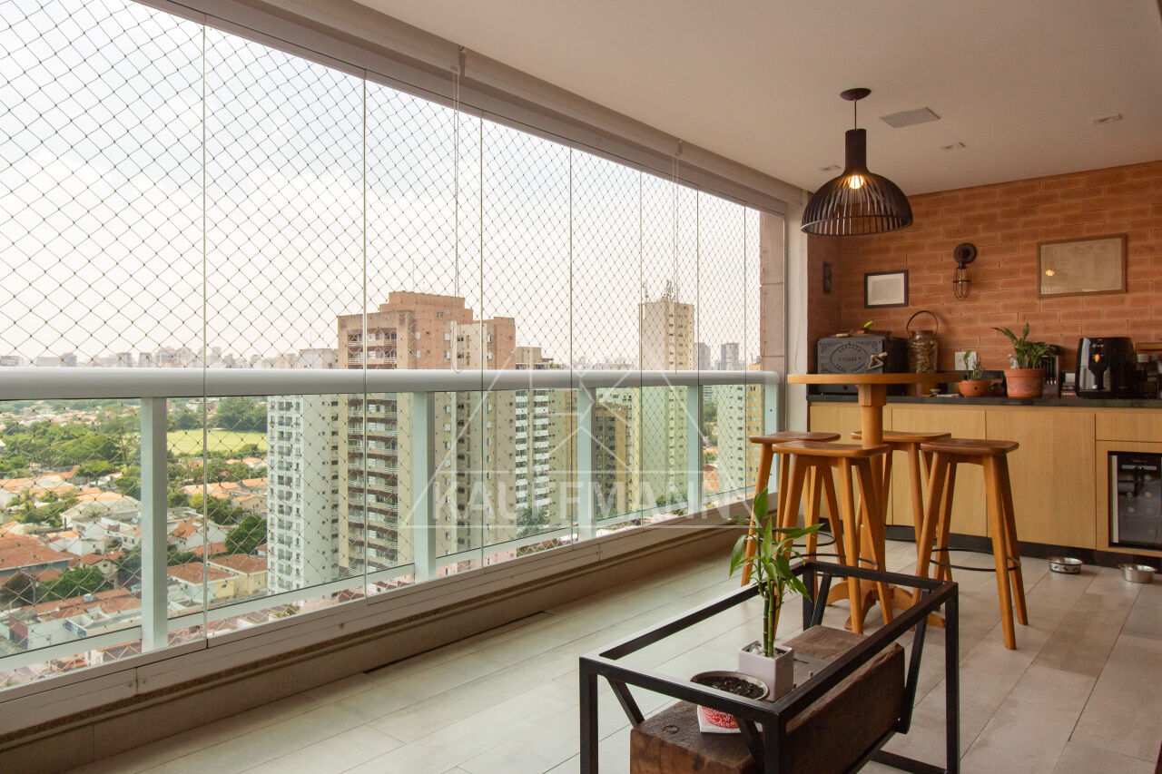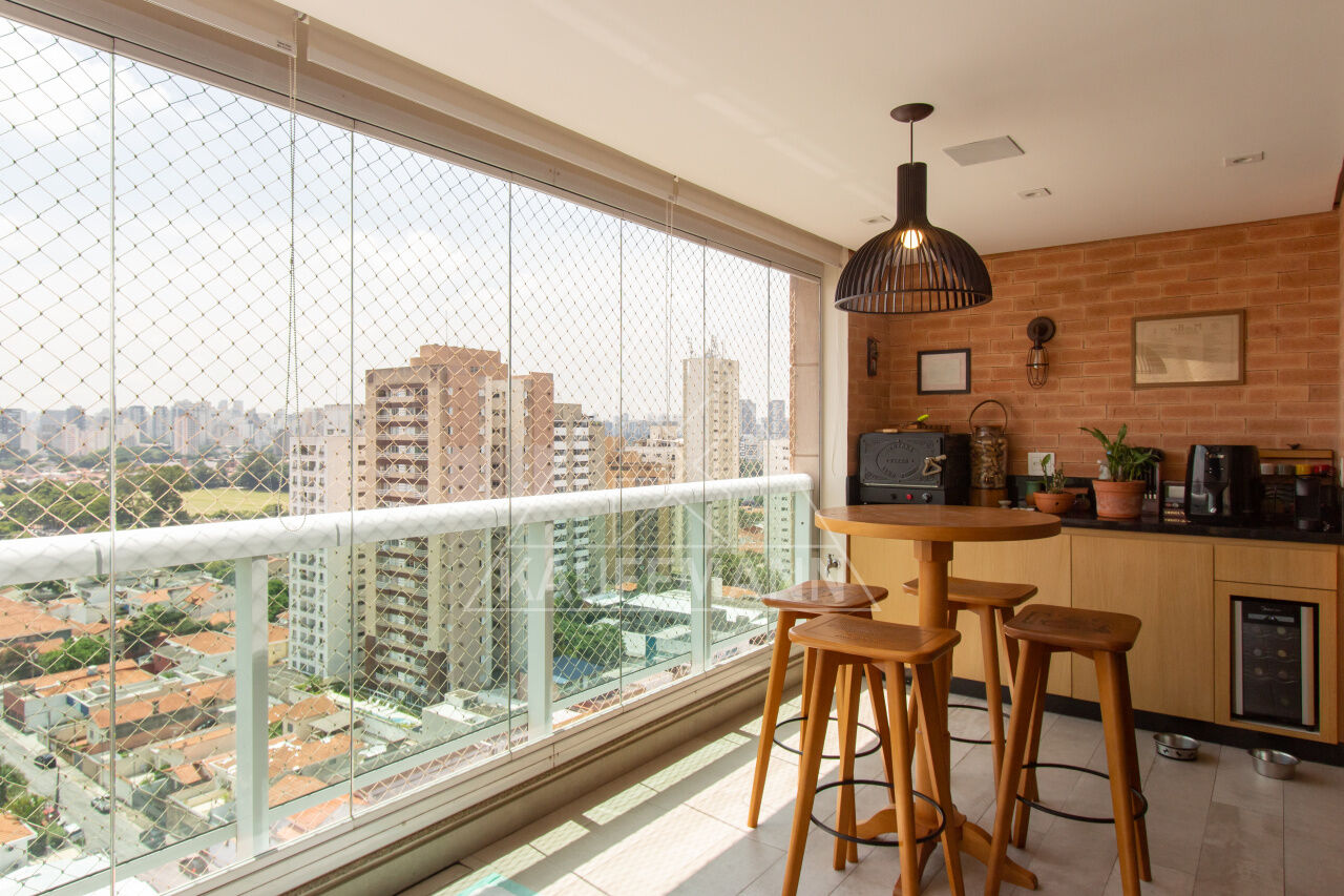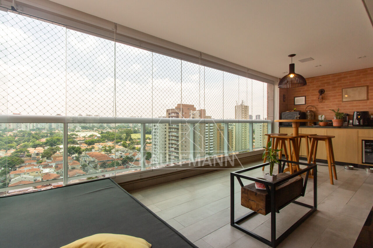 Em uma última reforma, a sala foi integrada com a sacada, onde foi colocado lareira, piso de madeira Cumaru e forno elétrico na sacada.