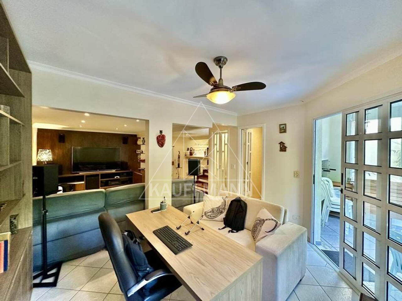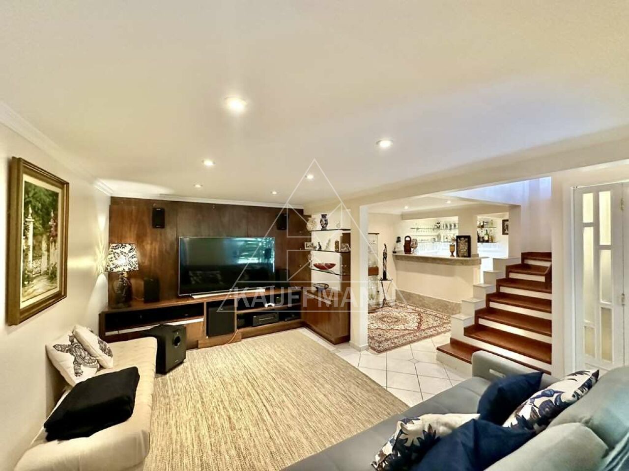 Salão multiuso no piso inferior, ideal para home theater e escritório