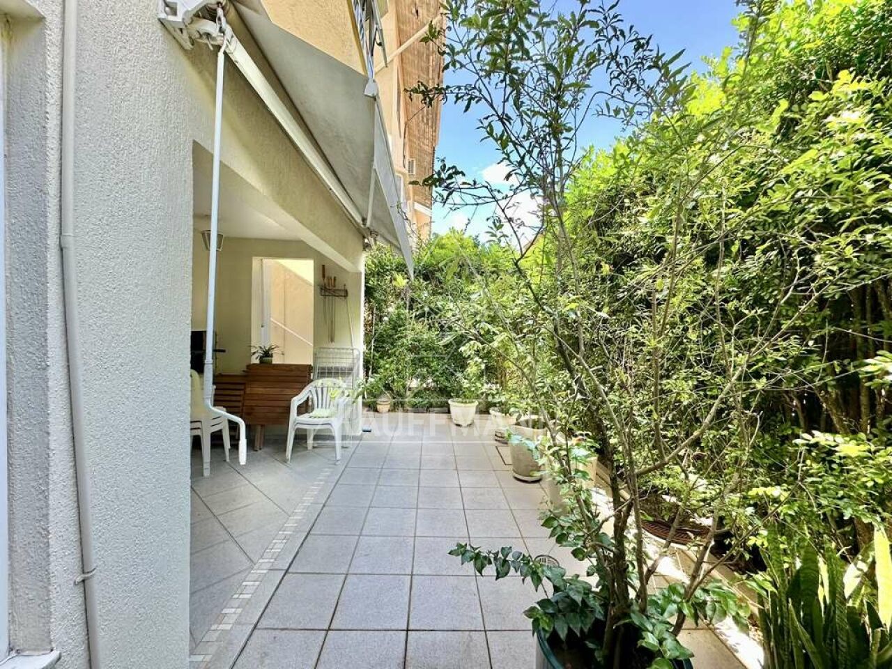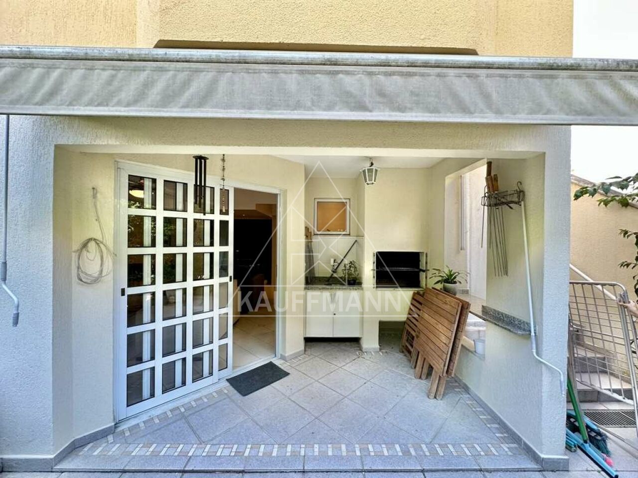 Varanda com toldo retrátil, churrasqueira e espaço gourmet