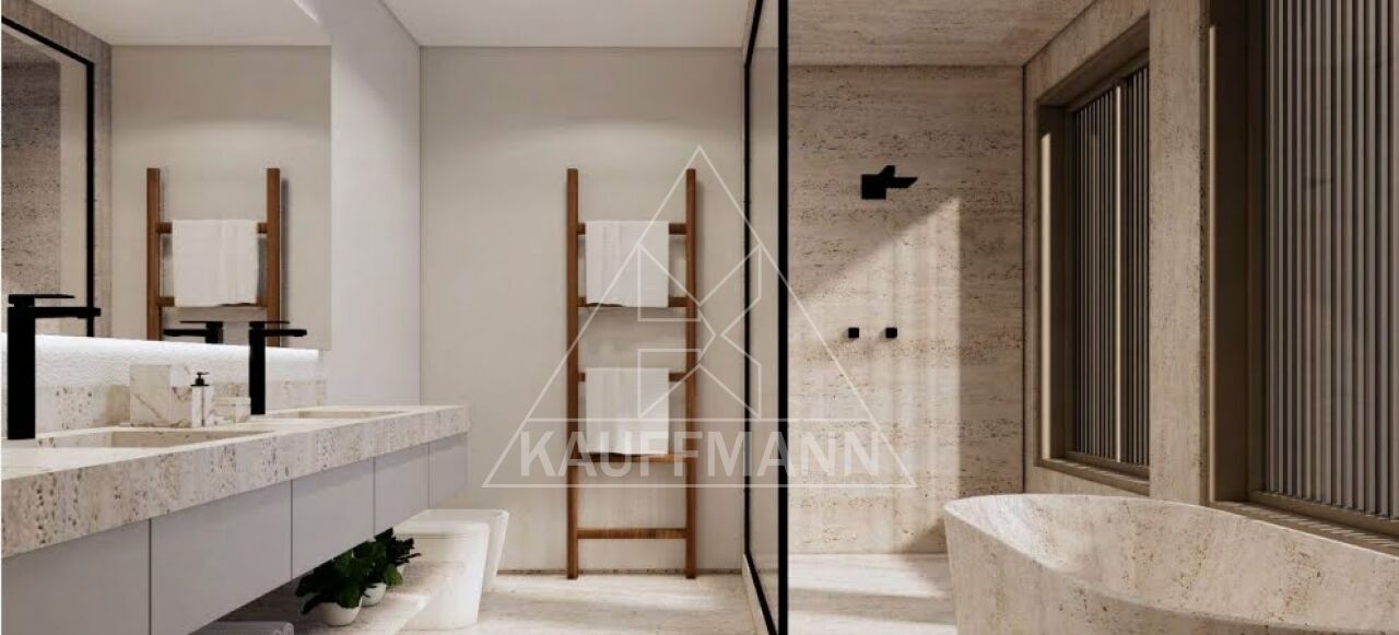 No subsolo encontram-se as vagas de garagem, área de serviço, aposentos de empregada e espaço para academia. No térreo o living, cozinha e jardim com piscina. O 1º pavimento comporta 2 a 3 suítes e o 2º pavimento a suíte master, home office ou espaço de convivência.