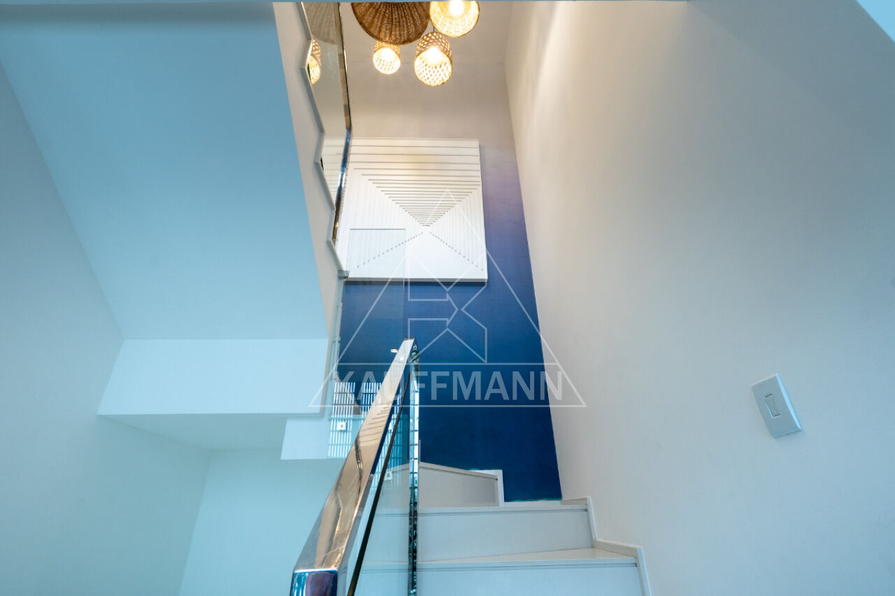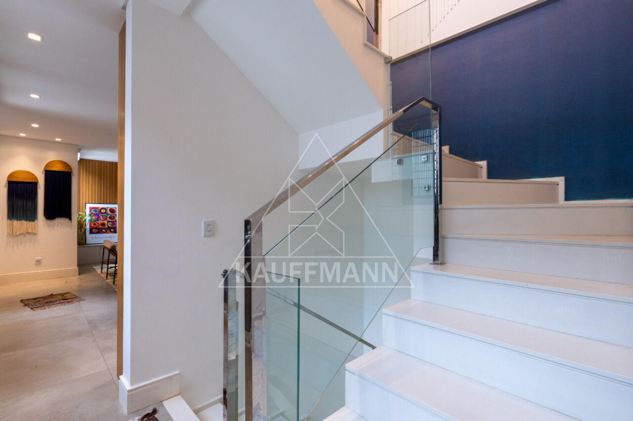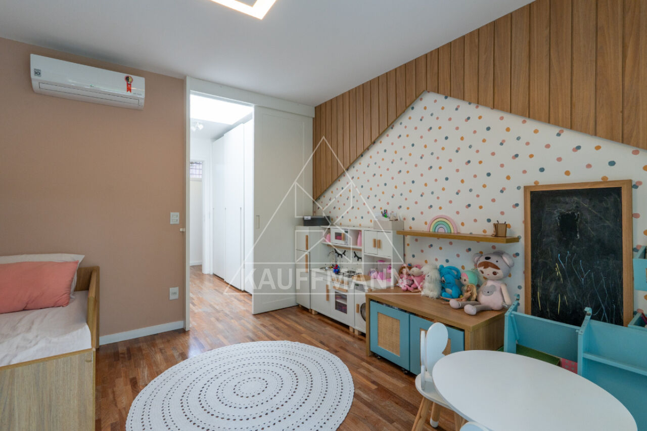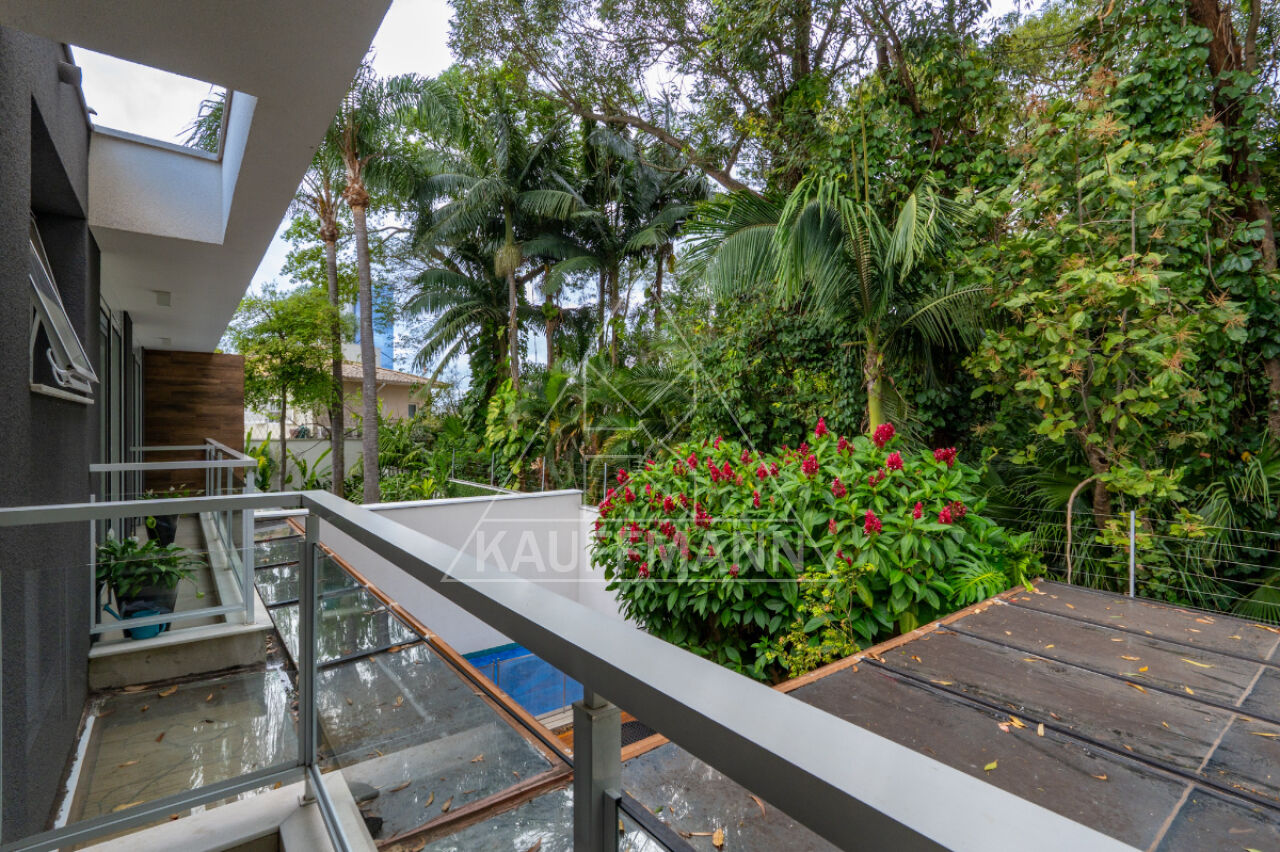 No piso superior, três suítes generosas oferecem conforto e exclusividade, todas com piso de madeira, marcenaria sob medida e varandas com vista para o verde. A suíte master se destaca pelo amplo closet, banheiro com bancada dupla e banheira, proporcionando um verdadeiro refúgio de bem-estar. No nível inferior, a residência dispõe de lavanderia e escritório com isolamento acústico, atendendo às demandas de funcionalidade e praticidade.