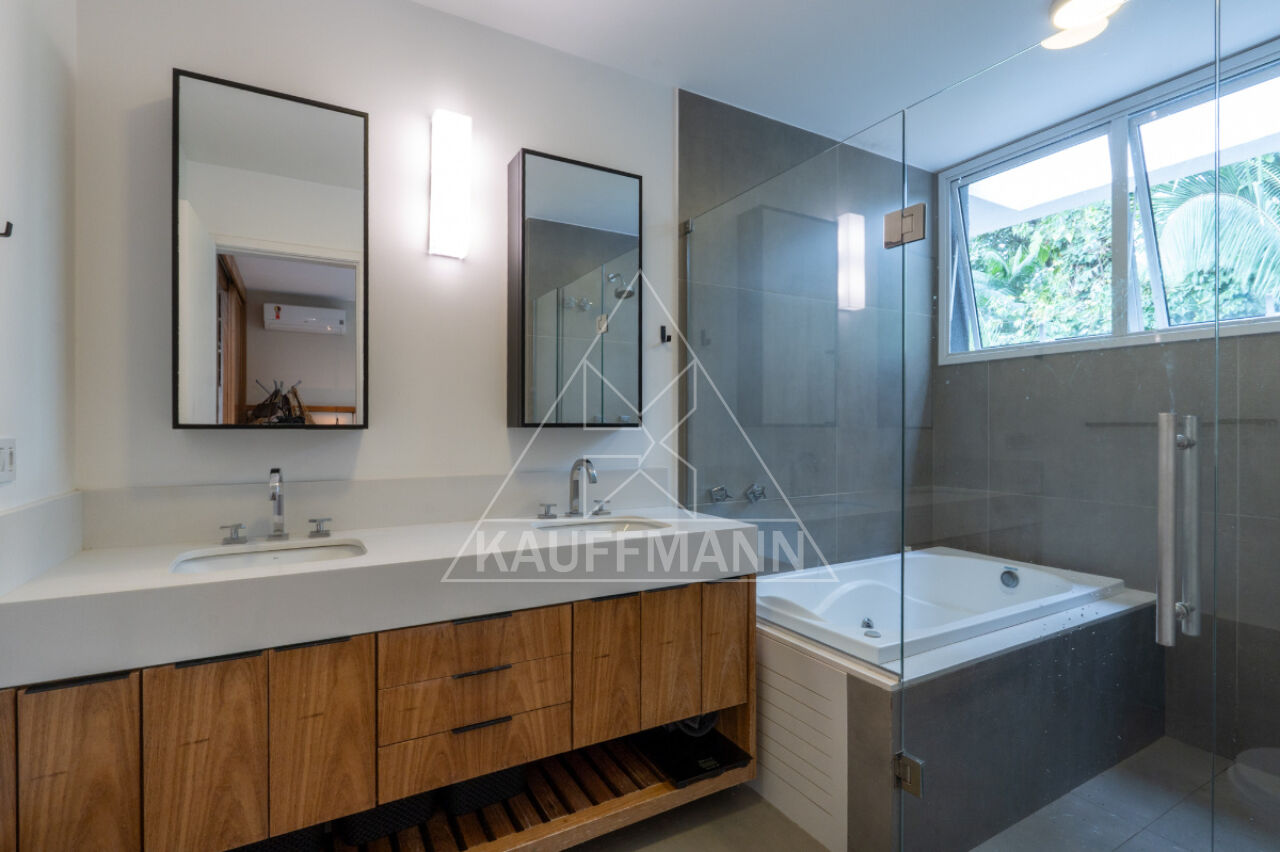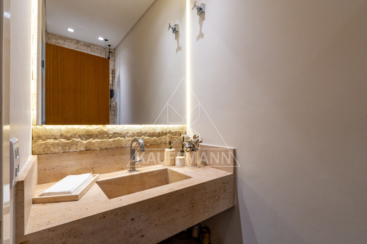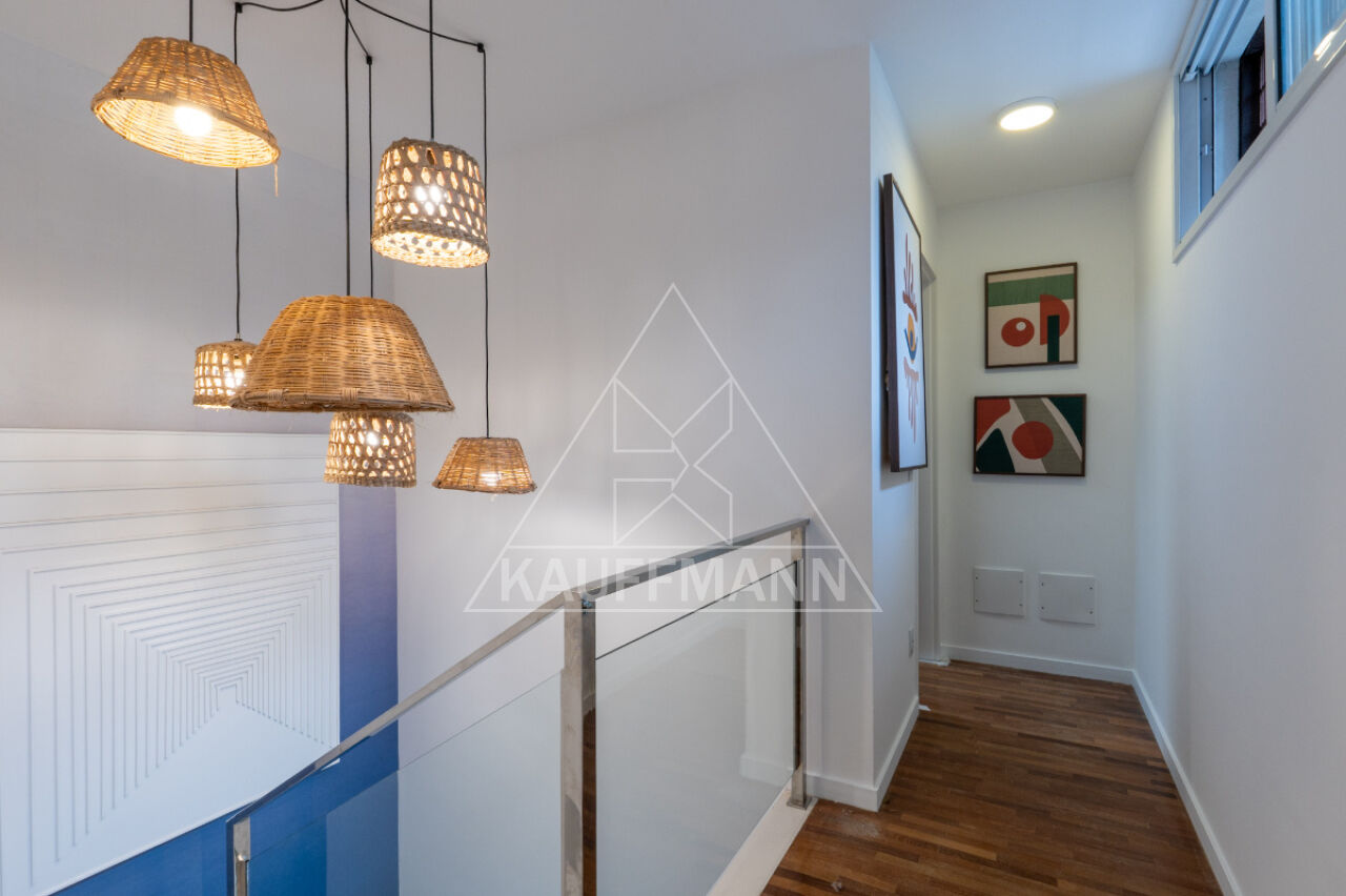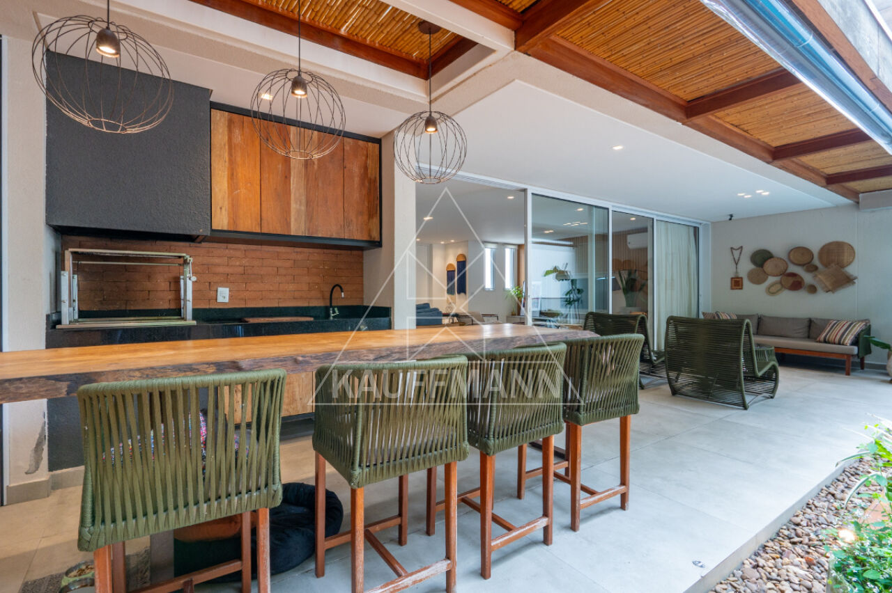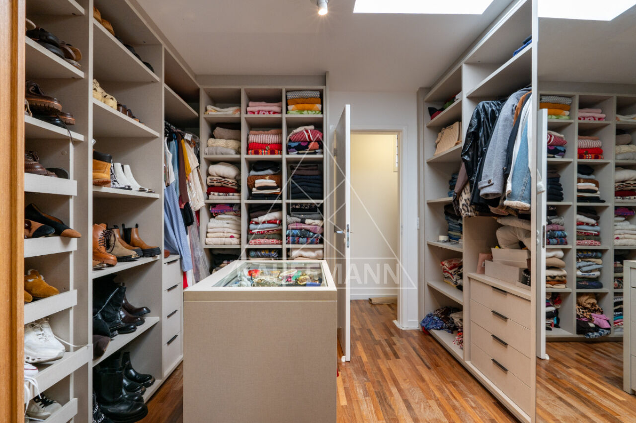 No piso superior, três suítes generosas oferecem conforto e exclusividade, todas com piso de madeira, marcenaria sob medida e varandas com vista para o verde. A suíte master se destaca pelo amplo closet, banheiro com bancada dupla e banheira, proporcionando um verdadeiro refúgio de bem-estar. No nível inferior, a residência dispõe de lavanderia e escritório com isolamento acústico, atendendo às demandas de funcionalidade e praticidade.