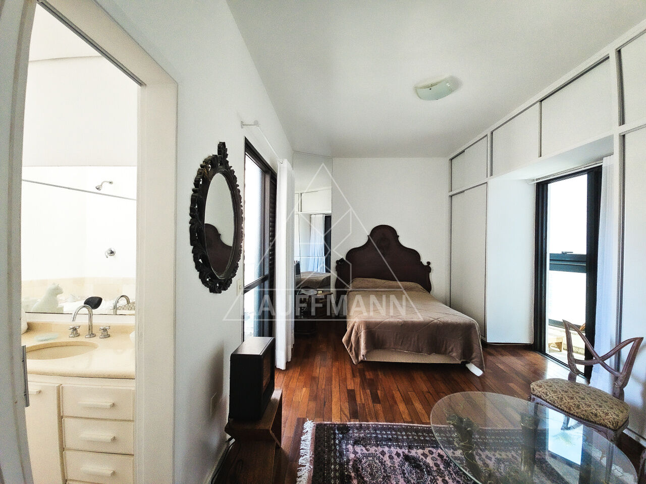 No piso superior, a cobertura conta com uma suíte espaçosa, garantindo privacidade e conforto. O segundo dormitório pode ser utilizado como home office ou quarto de hóspedes, ideal para quem busca versatilidade. O imóvel também dispõe de ar-condicionado em todos os ambientes e acabamentos de alto padrão.