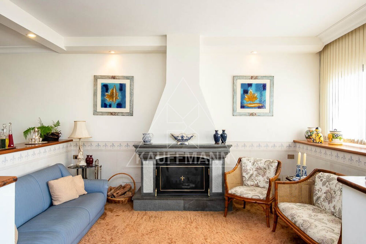 Living espaçoso com lareira e terraço integrado, perfeito para momentos de relaxamento