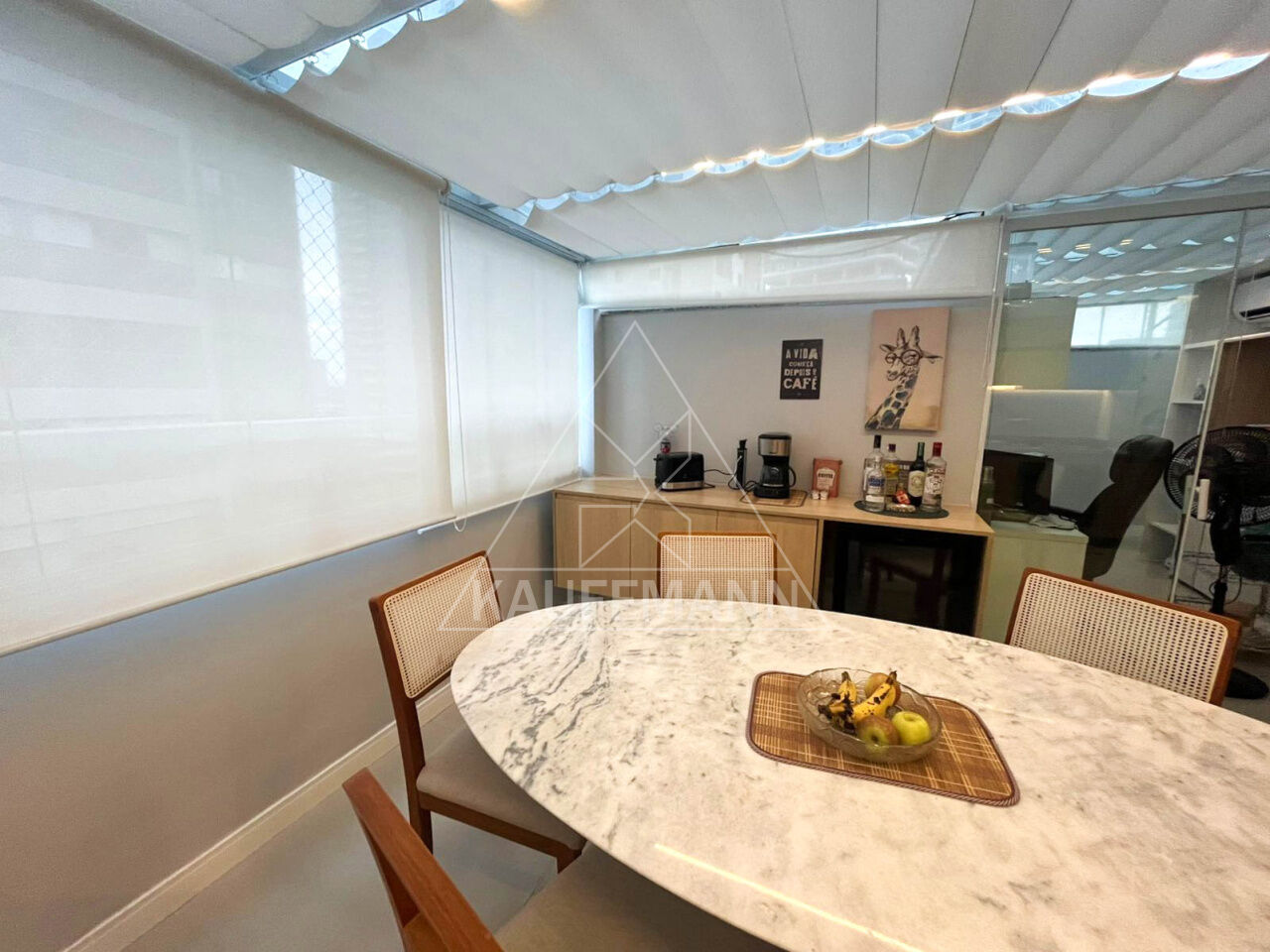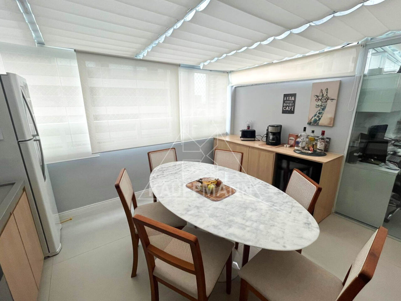 Sala de estar integrada à varanda envidraçada
