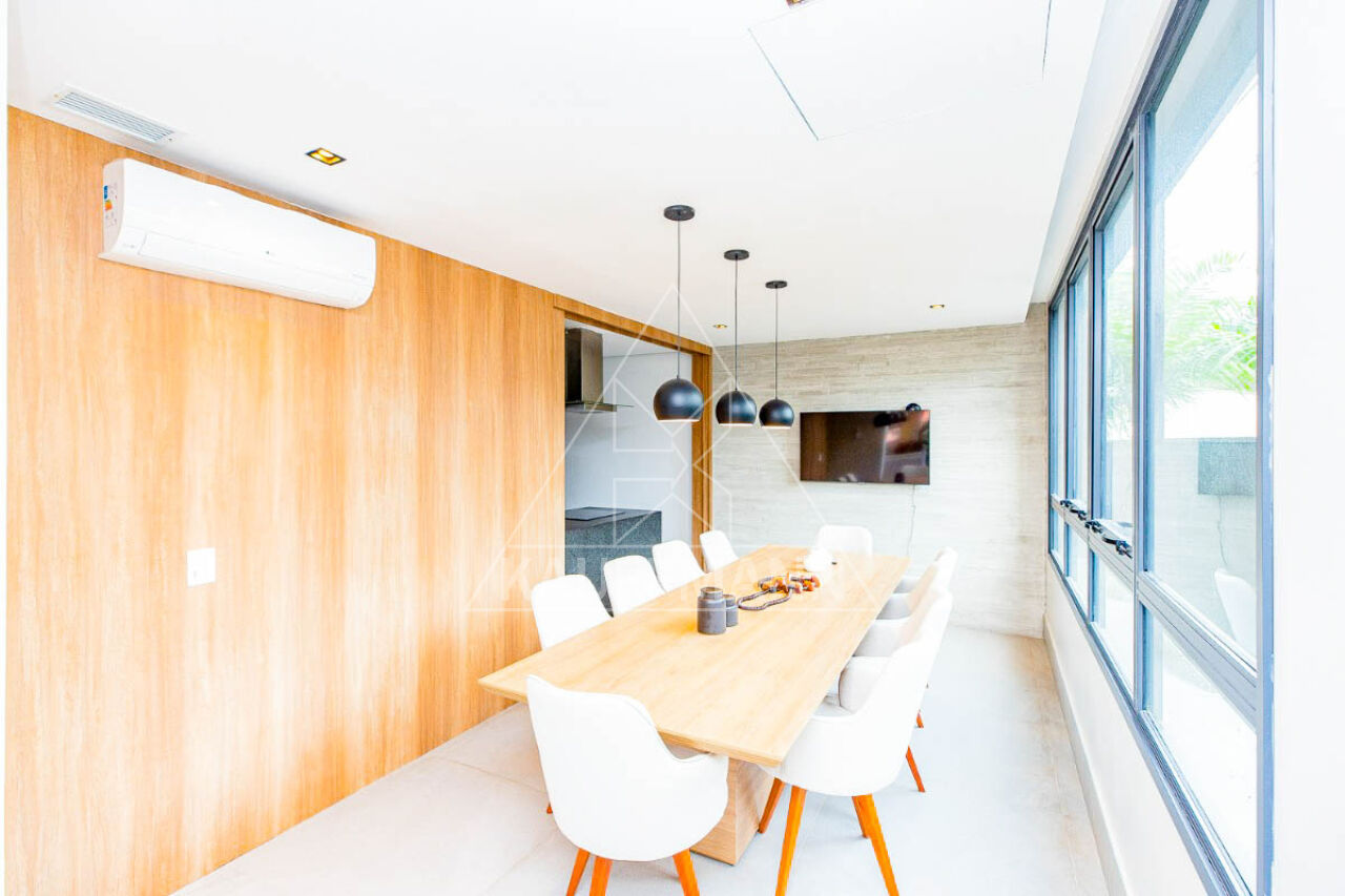 Varanda gourmet com churrasqueira e espaço para receber convidados