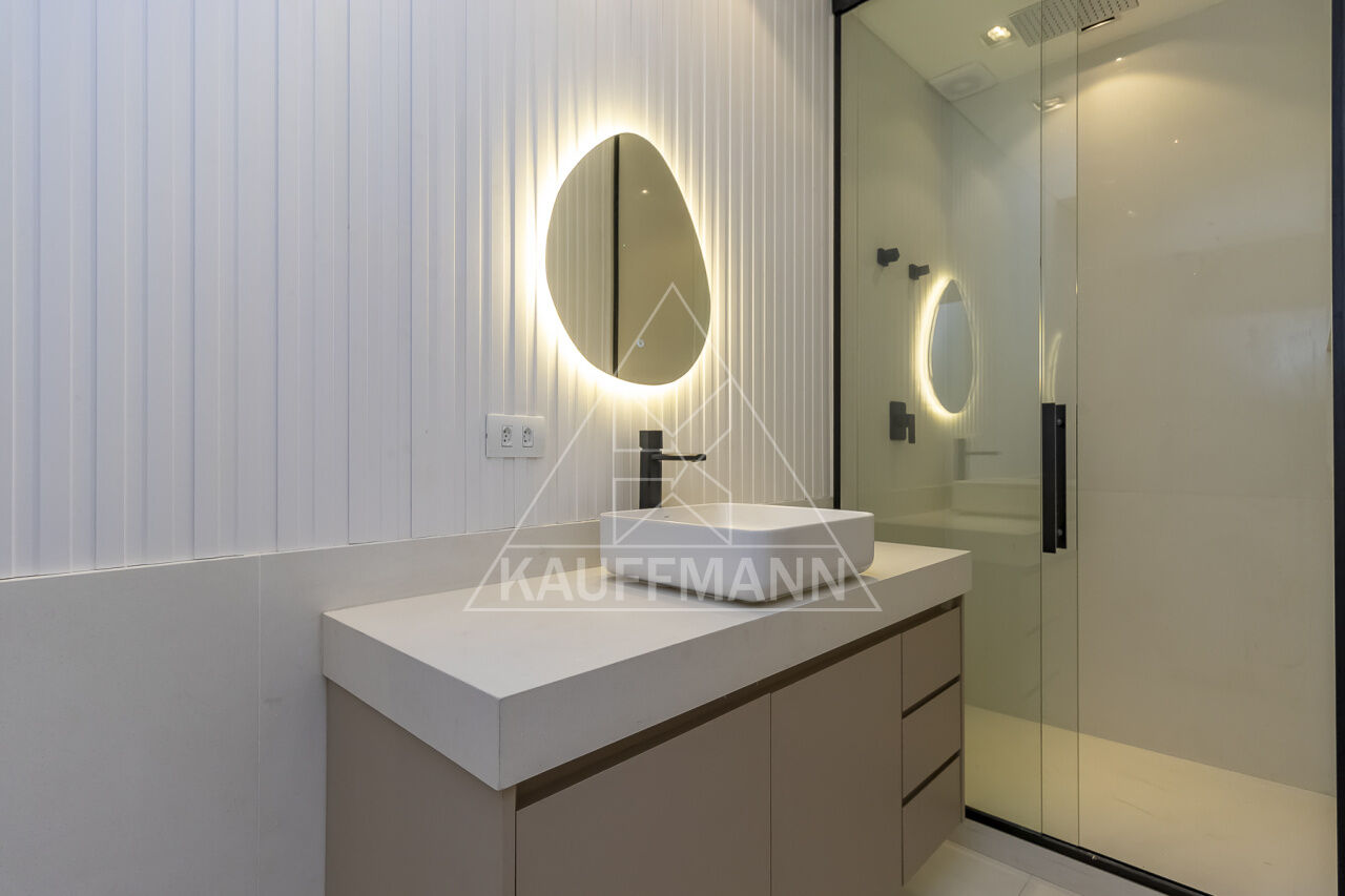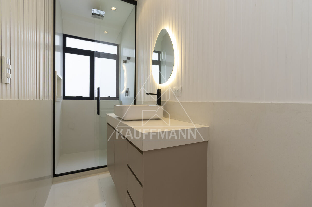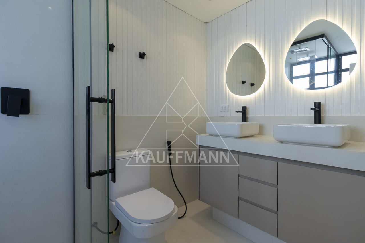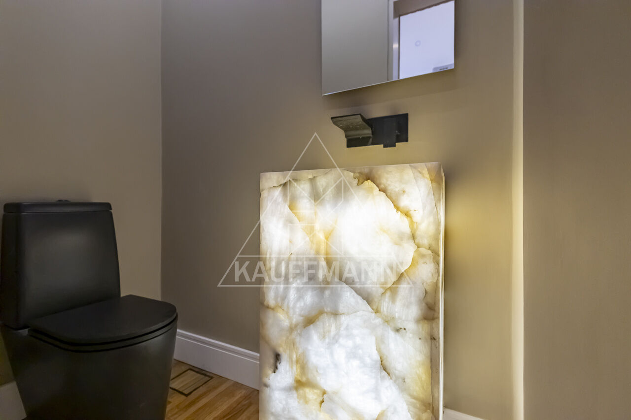 Banheiros com mármore e acabamentos refinados