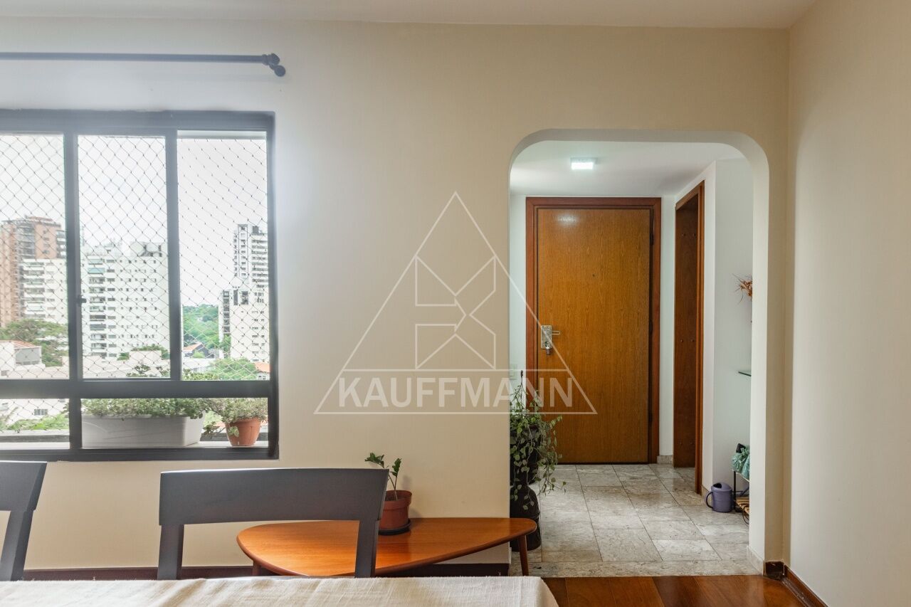 A área íntima conta com três dormitórios, sendo uma suíte, além de lavabo que atende a área social. A cozinha é funcional e bem posicionada, acompanhada de área de serviço, oferecendo praticidade no dia a dia. O imóvel dispõe de duas vagas de garagem e está inserido em condomínio com lazer completo, em localização privilegiada de Moema.