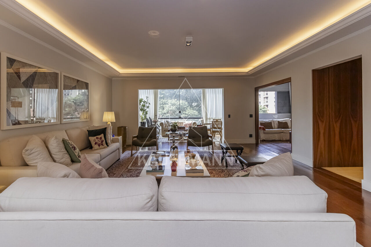 Este espaçoso e elegante apartamento em Moema combina sofisticação, conforto e excelente localização. Com 306m² de área útil, o imóvel foi completamente reformado e oferece ambientes amplos e bem distribuídos. São quatro dormitórios, sendo três suítes, incluindo uma suíte master com closet. O living integrado à varanda envidraçada proporciona um ambiente aconchegante e iluminado, ideal para receber. A sala de jantar conta com adega, e a copa e cozinha são planejadas com ótimo aproveitamento de espaço. Há ainda lavabo, área de serviço completa, dependência de funcionária com banheiro e quatro vagas de garagem. Um apartamento ideal para famílias que valorizam espaço e praticidade.