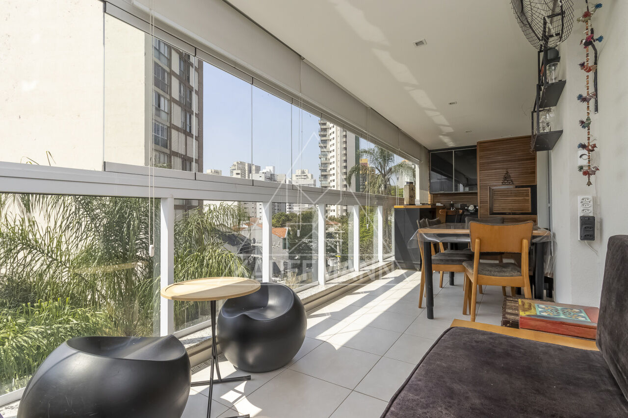 Varanda gourmet envidraçada com vista para o Parque da Água Branca
