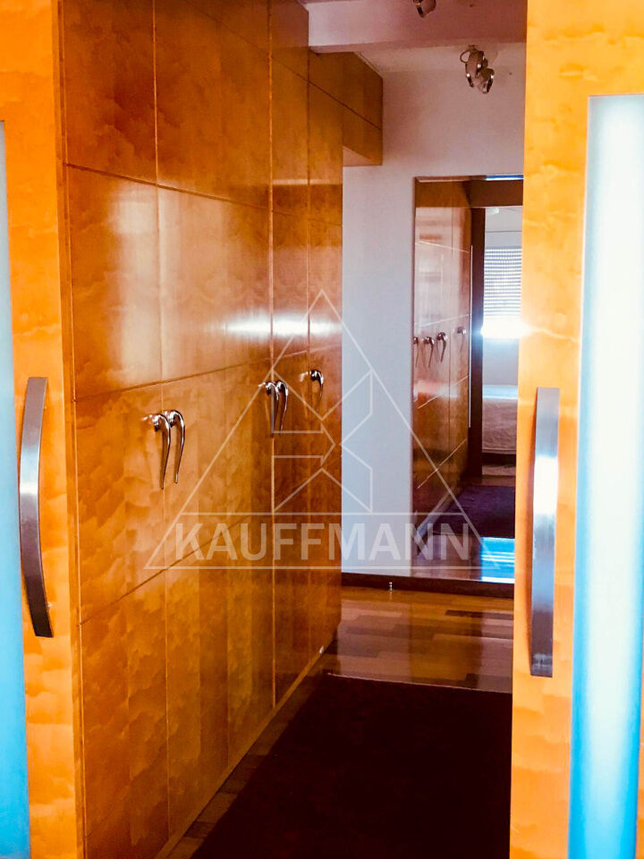 O apartamento foi personalizado para um casal, contando com uma espaçosa suíte master, closet com 10 portas e banheiro equipado com hidromassagem e box de chuveiro independente. O segundo dormitório possui duas janelas, proporcionando excelente iluminação natural. Há também um escritório funcional e bem distribuído.