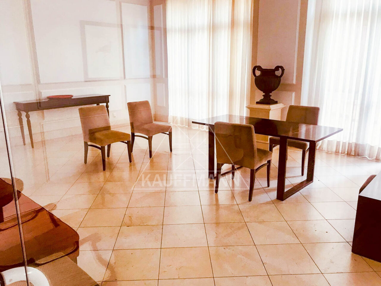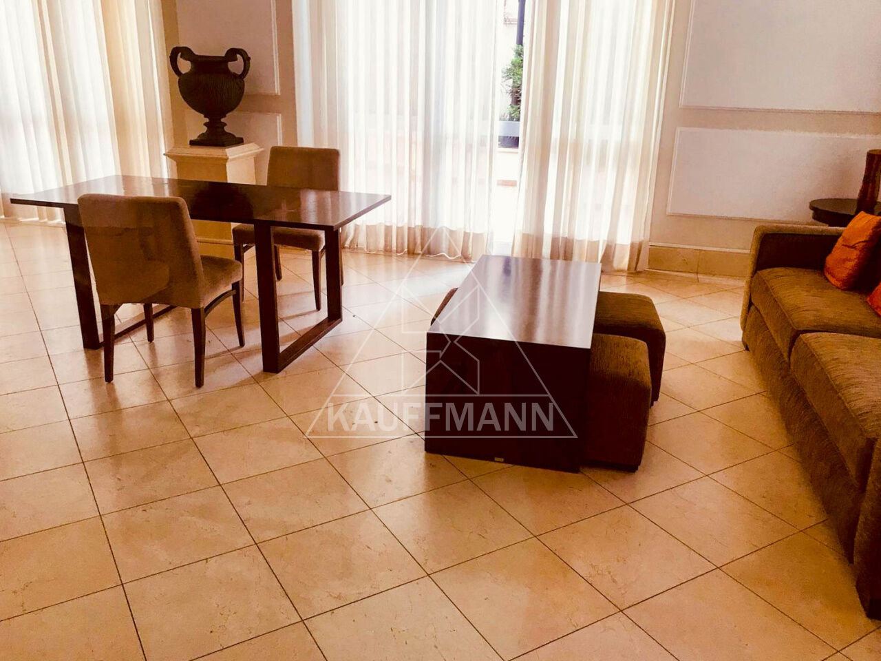 O living amplo e integrado ao terraço envidraçado proporciona uma vista privilegiada da cidade. O imóvel possui acabamento refinado, com revestimento de madeira de alta qualidade em todos os ambientes secos e cerâmica nas áreas molhadas. Além disso, conta com ar-condicionado em todos os cômodos.