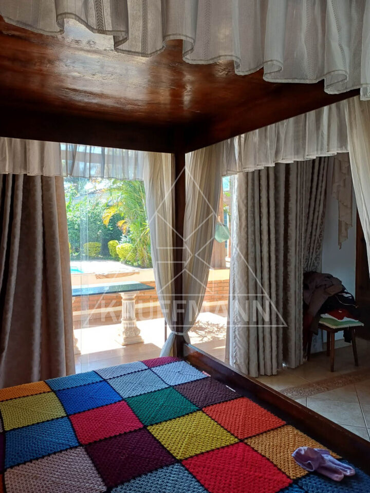 A propriedade também dispõe de área completa de lazer, incluindo salão de festas, salão de jogos, sauna e churrasqueira, além de casa de hóspedes e dependências de serviço, oferecendo estrutura ideal para receber família e convidados com conforto.