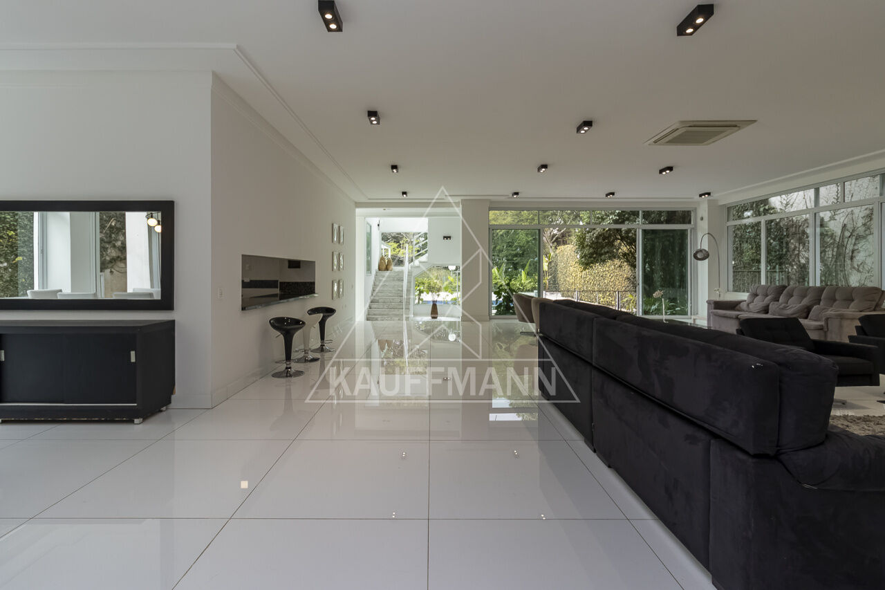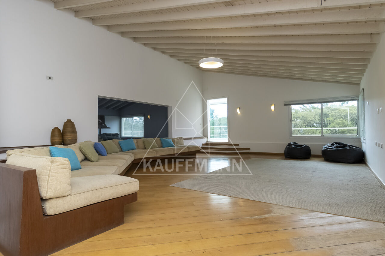 No térreo, a garagem tem capacidade para 7 carros, sendo 6 vagas cobertas, e o hall de entrada recebe os visitantes com elegância. A casa ainda conta com uma adega climatizada, orquidário e uma casa do caseiro, garantindo total conforto e praticidade.