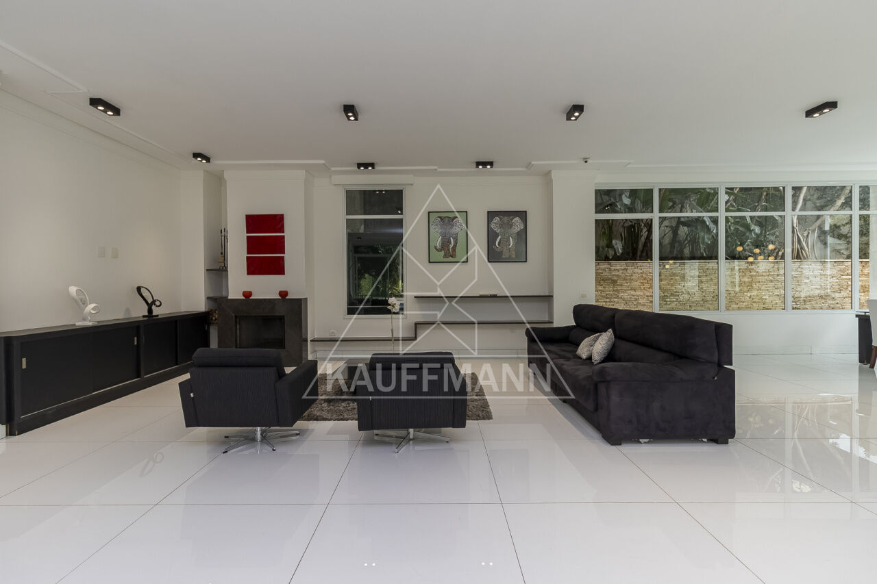 Ampla sala com ar-condicionado central, 3 ambientes, espelho d'água e lareira