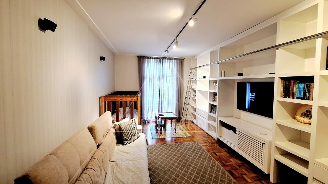 Living com pé direito duplo e sala integrada para 3 ambientes, além de uma sala de TV separada;