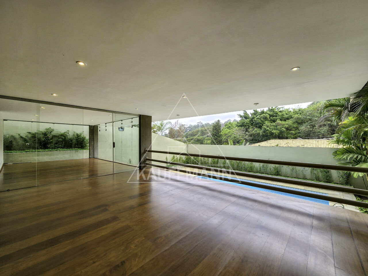 A casa possui 5 suítes amplas, um home theater e um living com lareira cercado por vidro, que oferece uma vista espetacular para a área verde. O design moderno e a abundante iluminação natural são destaques em todos os ambientes. A área externa conta com uma piscina, jardim de inverno, e um espaço para escritório e depósito, além de uma edícula com cozinha e dependências de serviço.