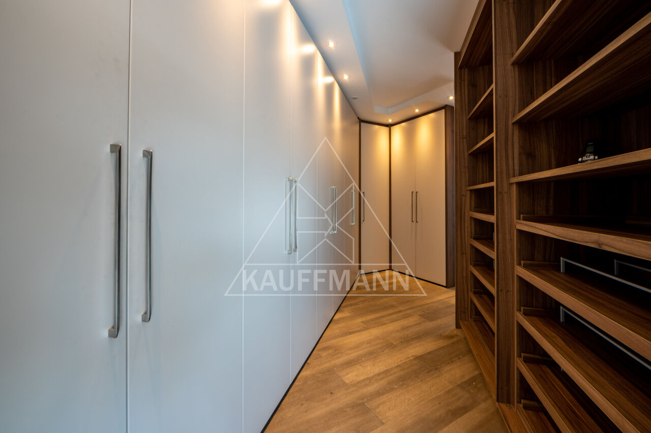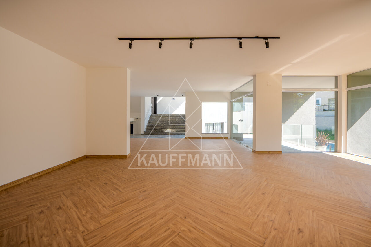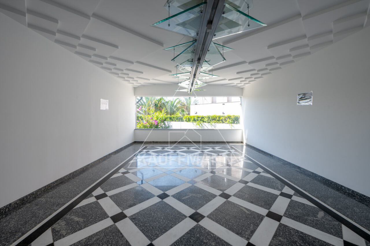 Com linhas retas e acabamento diferenciado, piso em mármore, pedra e tábua de madeira. Com um estilo contemporâneo, o imóvel contém piscina aquecida, churrasqueira externa coberta, espaço gourmet, adega refrigerada, home theater profissional com paredes forradas de sonex, poltronas reclináveis, academia, brinquedoteca e sauna. Hall de entrada com pé- direto duplo e quatro suítes com closet, escritório com banheiro que pode ser revertido na quinta suíte e family room. Área reservada a elevador com três paradas, 8 vagas de garagem.