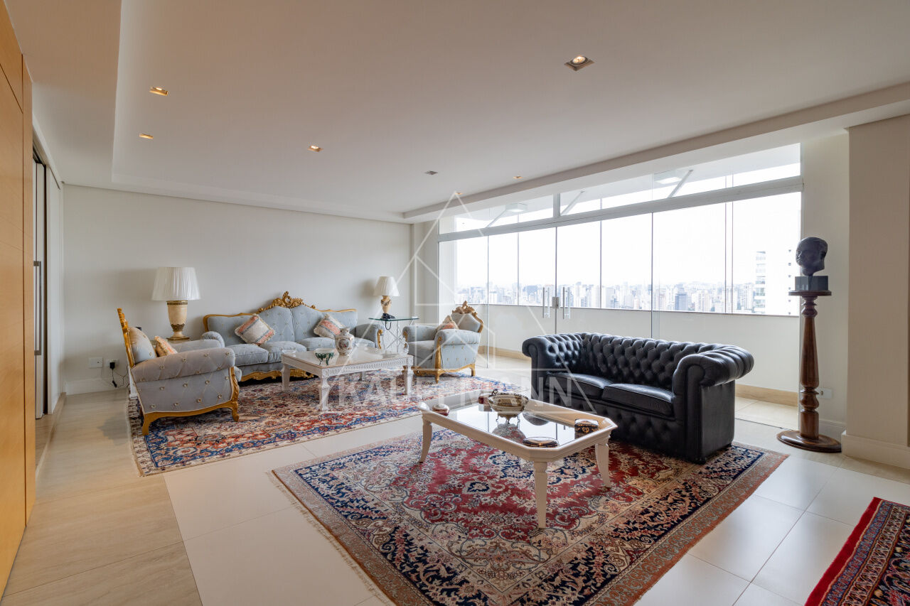 No pavimento inferior, a cobertura conta com salas de estar e jantar integradas à varanda, lavabo, três suítes confortáveis, incluindo a máster com closet ampliado e varanda incorporada, além de cozinha planejada, lavanderia e dependência completa de serviço. São quatro dormitórios no total, sendo três suítes, seis banheiros e três vagas de garagem com depósito privativo. Reformada recentemente, está pronta para morar e atender aos mais altos padrões de exigência.