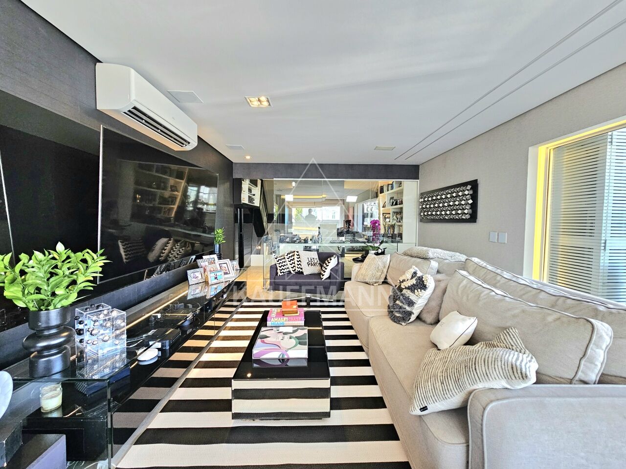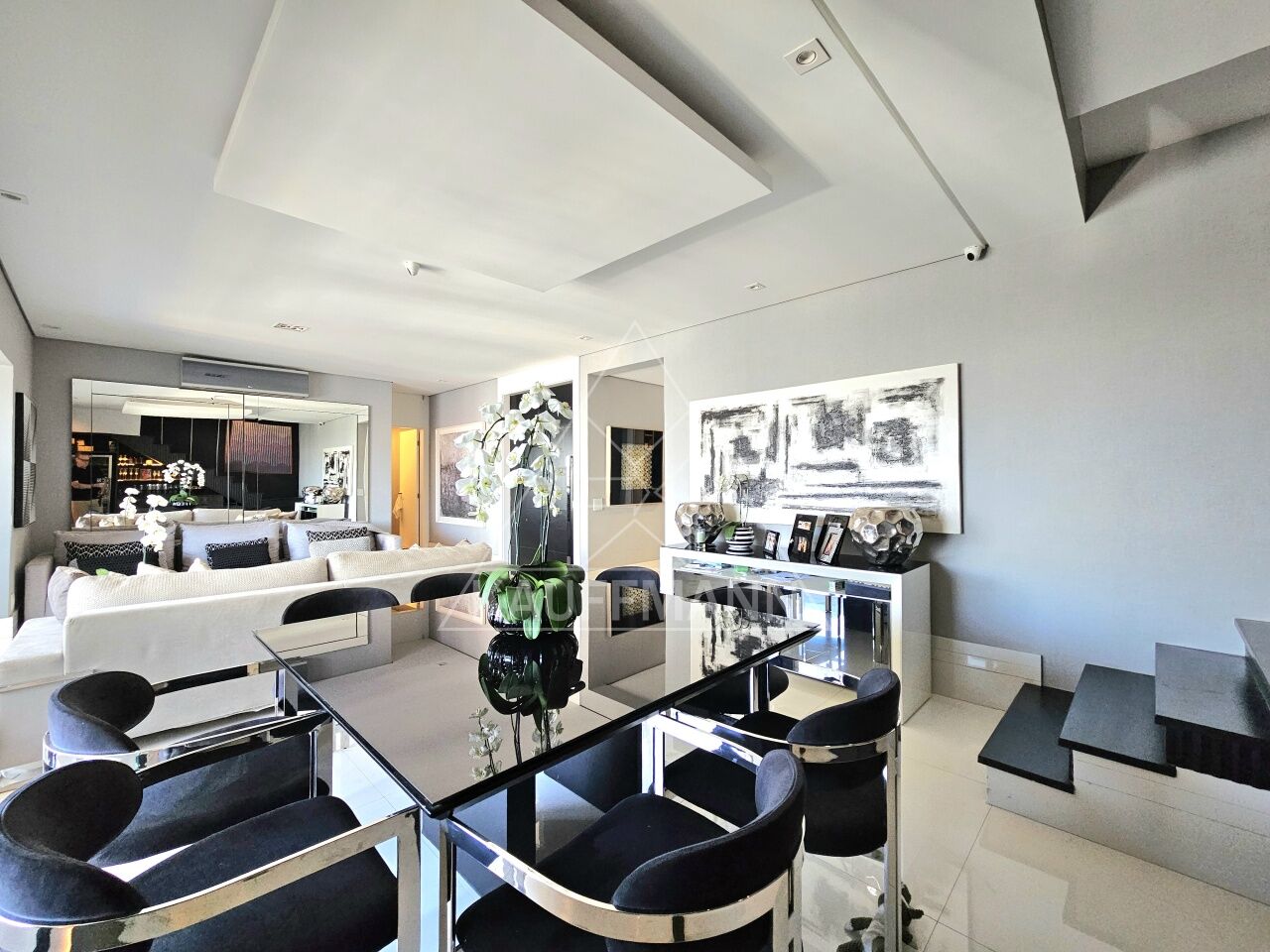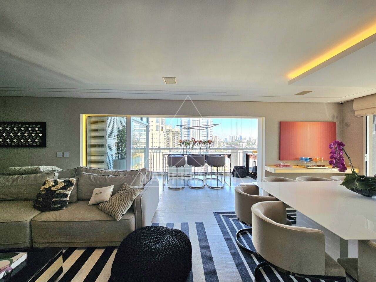 Salas de estar e jantar integradas à varanda