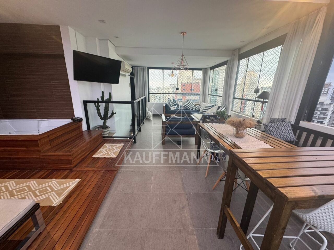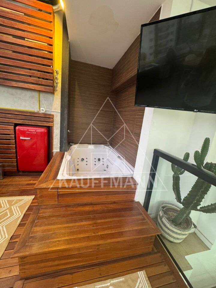 A área superior oferece um espaço exclusivo de lazer com atmosfera privativa, incluindo churrasqueira, jacuzzi e teto retrátil, garantindo luminosidade e versatilidade para diferentes momentos. A área íntima dispõe de três dormitórios, sendo duas suítes, com destaque para a suíte principal com closet. O imóvel conta ainda com lavabo, cozinha funcional, área de serviço e uma vaga de garagem ampla.