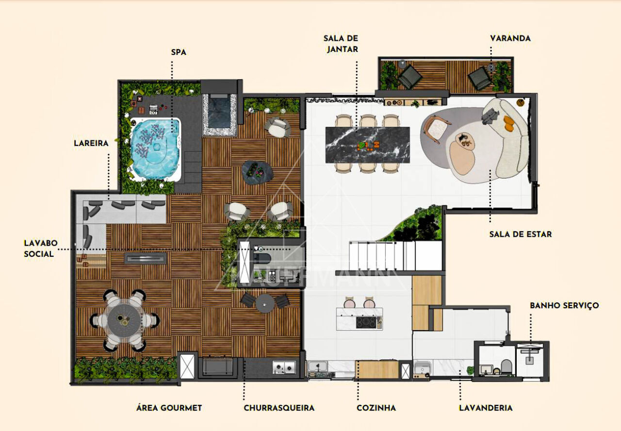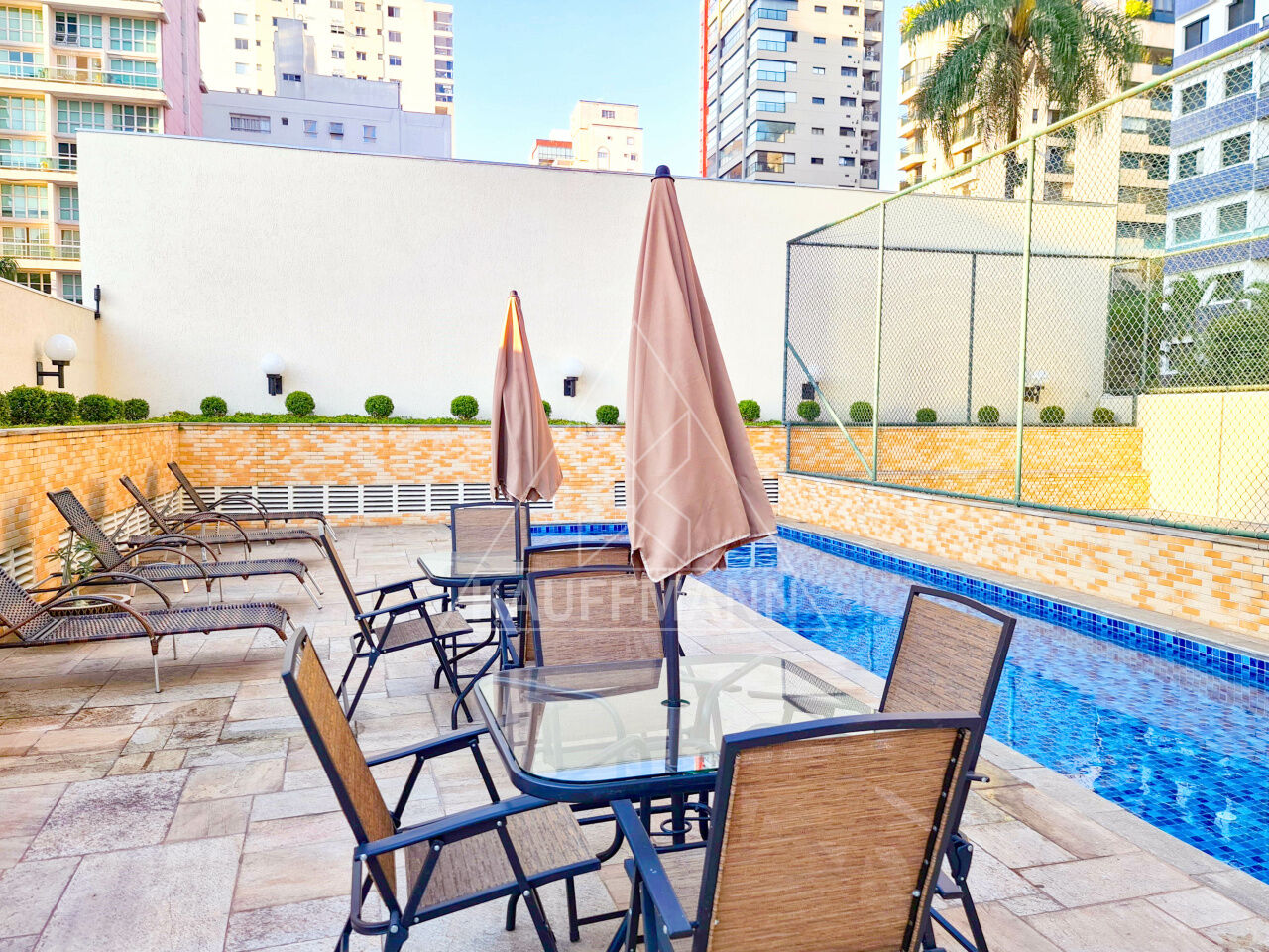 Terraço com piscina e possibilidade de integração com sala e copa