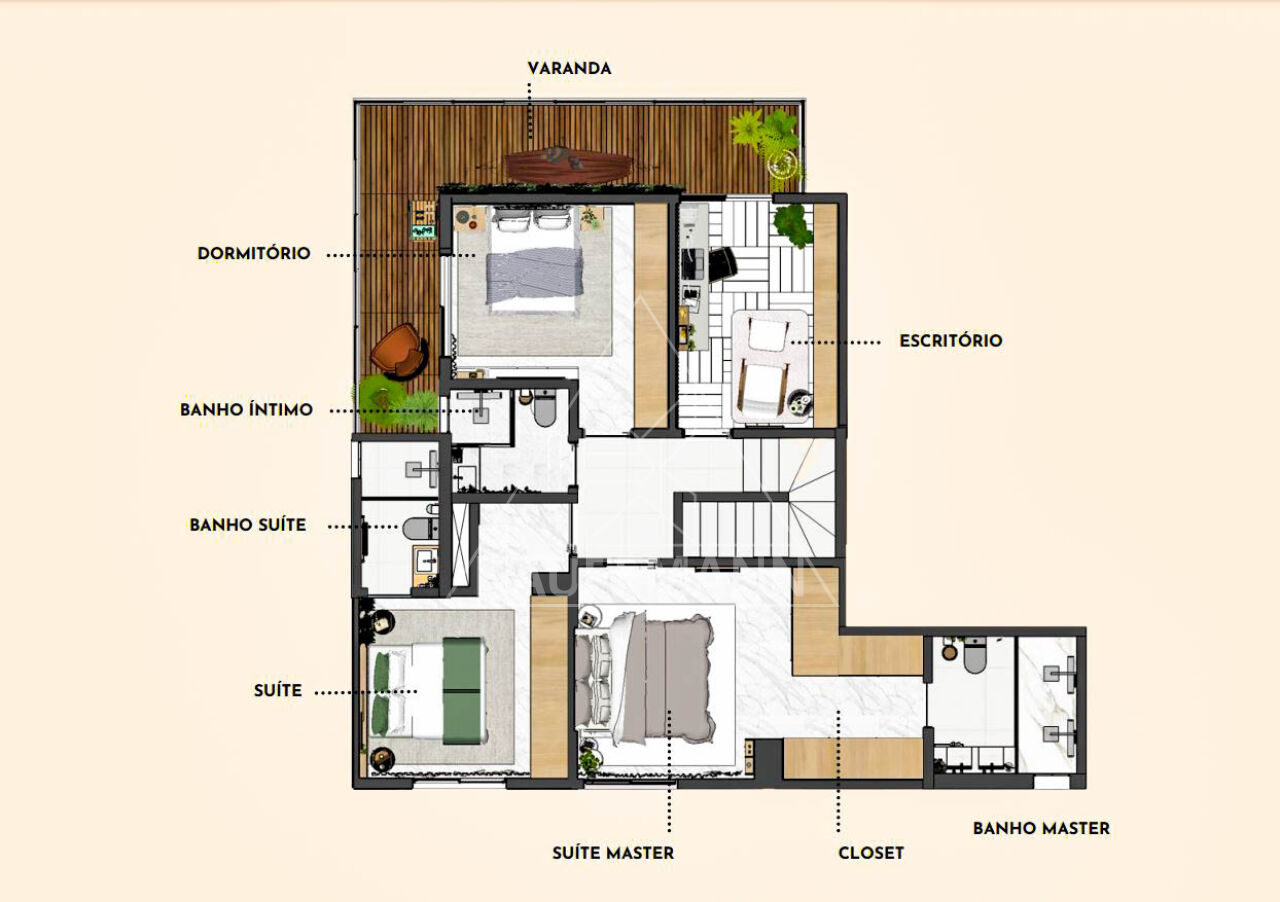 Opção de layout com 3 suítes e um escritório/home family