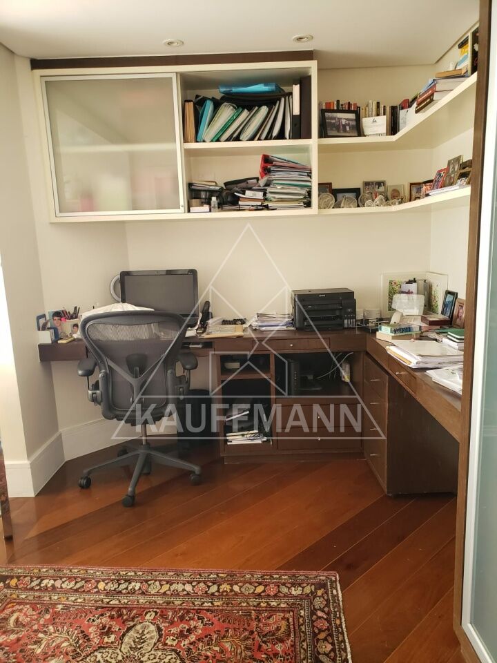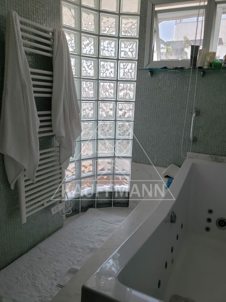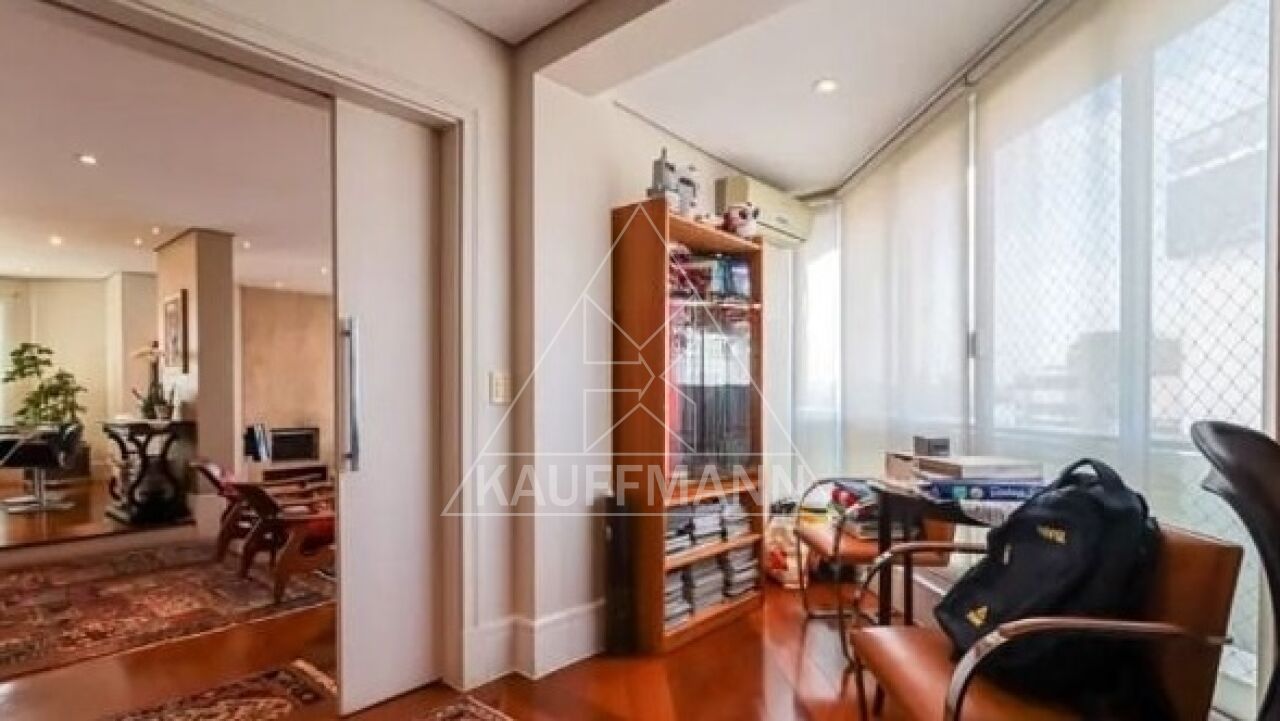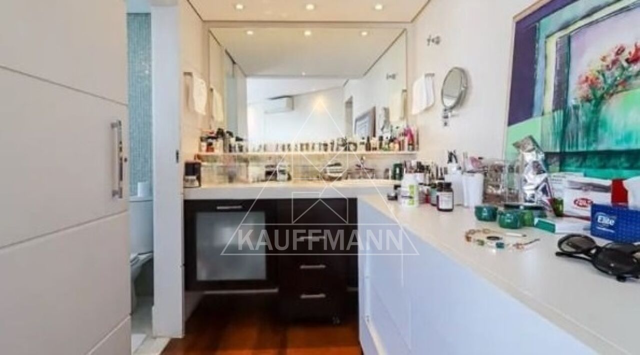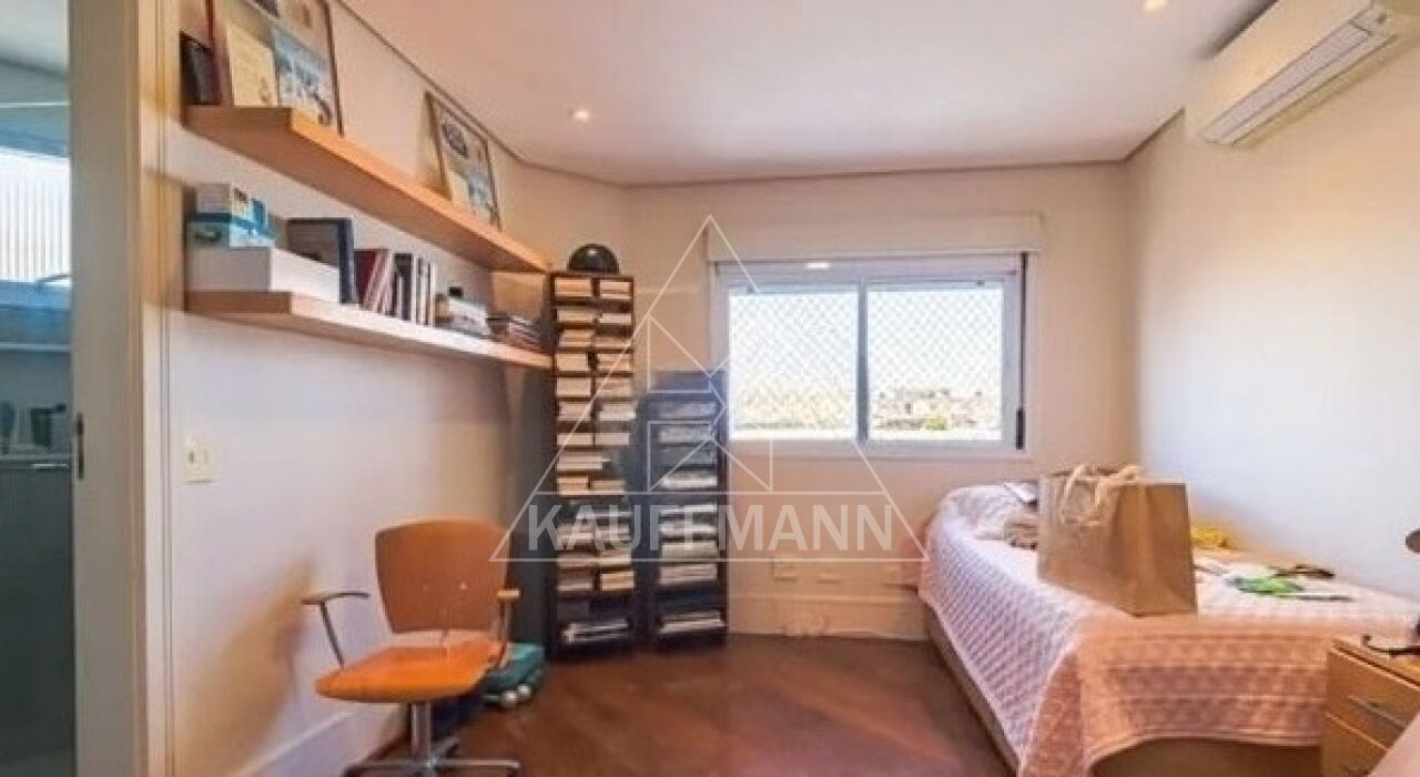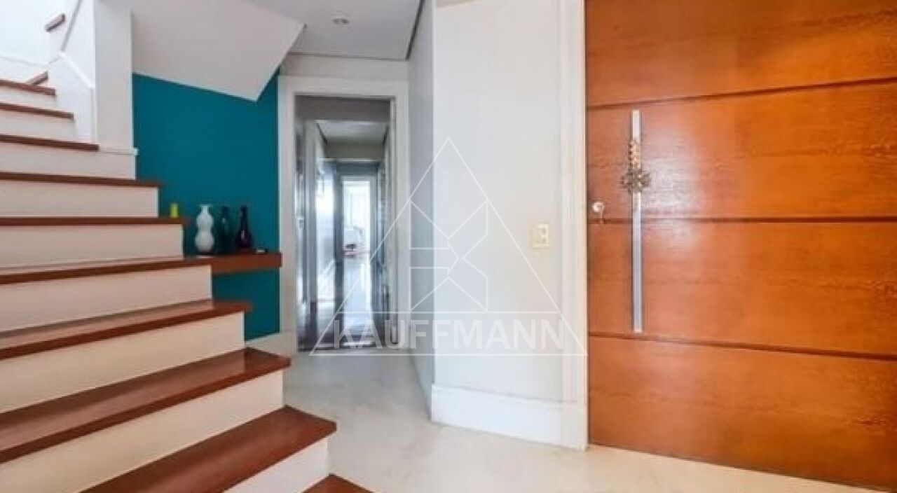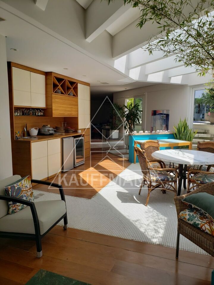 No piso inferior, o imóvel conta com hall de entrada, living espaçoso, sala com lareira, sala de jantar, escritório privativo e lavabo. A área de apoio possui copa, cozinha, despensa e dependências de serviço. A área íntima dispõe de três suítes, todas com closet.