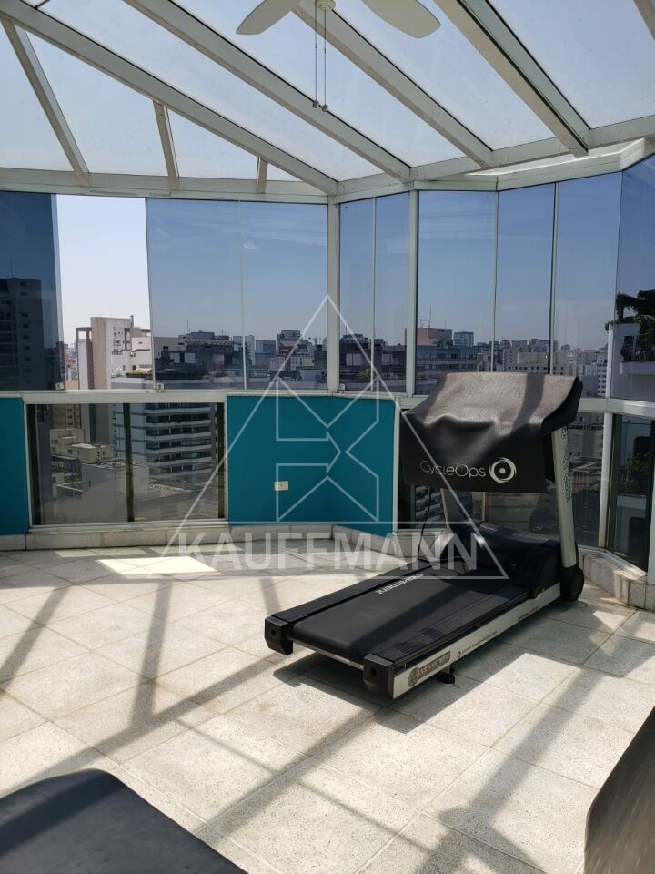 No piso superior há uma ampla sala de home theater, biblioteca, sala de estar com bar e espaço preparado para área gourmet com churrasqueira. O pavimento também possui academia privativa com vista panorâmica e sauna úmida. Na área externa encontram-se a piscina, solarium e espaço para convivência.